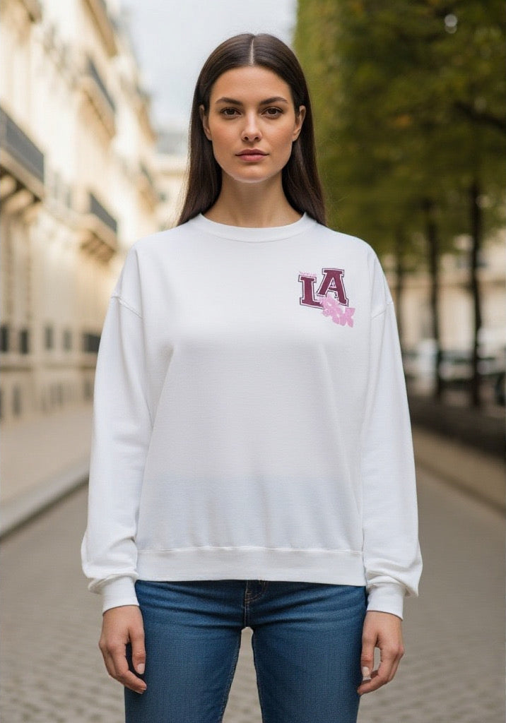 Un essentiel casual aux accents californiens. Ce sweat en coton séduit par sa coupe oversize tendance et son inscription iconique LA ~ CALIFORNIA sur le devant. Confortable et facile à porter, il s’intègre parfaitement à un vestiaire urbain et décontracté. Une pièce incontournable qui combine confort et esprit West Coast, idéale pour compléter le dressing de vos clientes.
